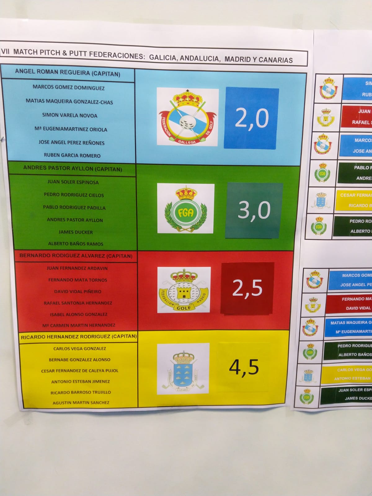 Hoy se ha enfrentado Madrid y Canarias y Andalucía contra Galicia. En el turno de mañana se han disputado los partidos foursome. Los jugadores Juan Fernández-Ardavín y Rafael Santonja han ganado a sus contrincantes, no así el resto de madrileños que han caído en sus otros partidos.