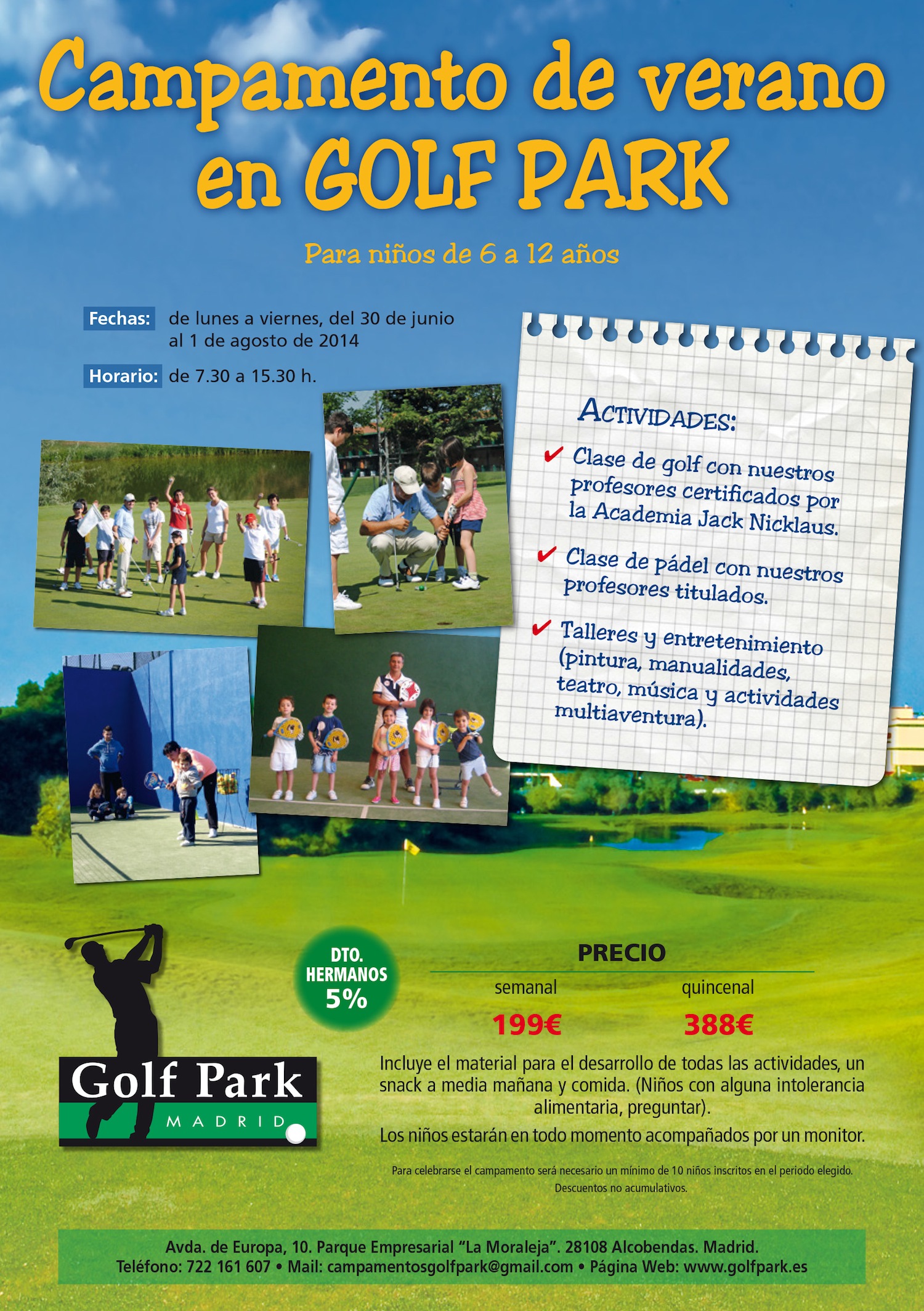 De lunes a viernes del 30 de junio al 1 de agosto. Un año más, en estas vacaciones de verano GOLF PARK vuelve a ...