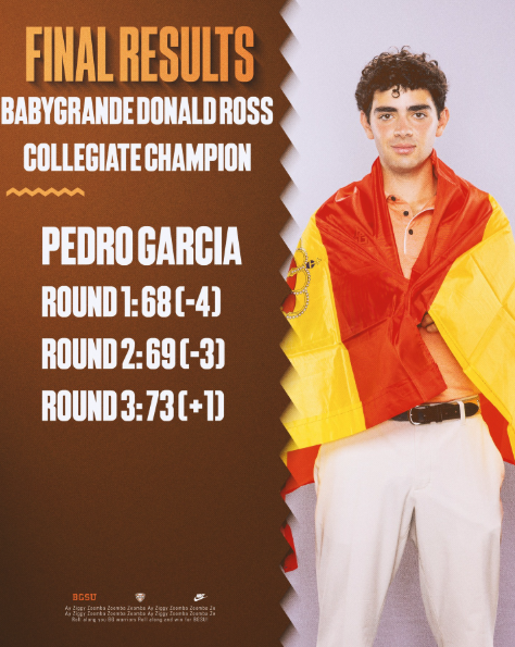 Pedro García, antiguo componente del programa CETEMA de la Real Federación de Golf de Madrid, ha llevado a los Falcons a la victoria en su primer año universitario.