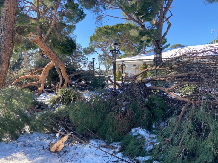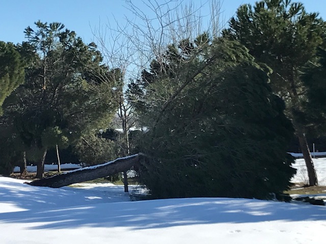 Según la clase de arbolado, unas han sufrido más que otras. Campos donde la encina o los olmos son los que dibujan el entorno, han padecido menos, pero en los que predomina el pino u otras especies de ramaje más compacto, las caídas y roturas de las ramas o los propios árboles ha sido más evidente.