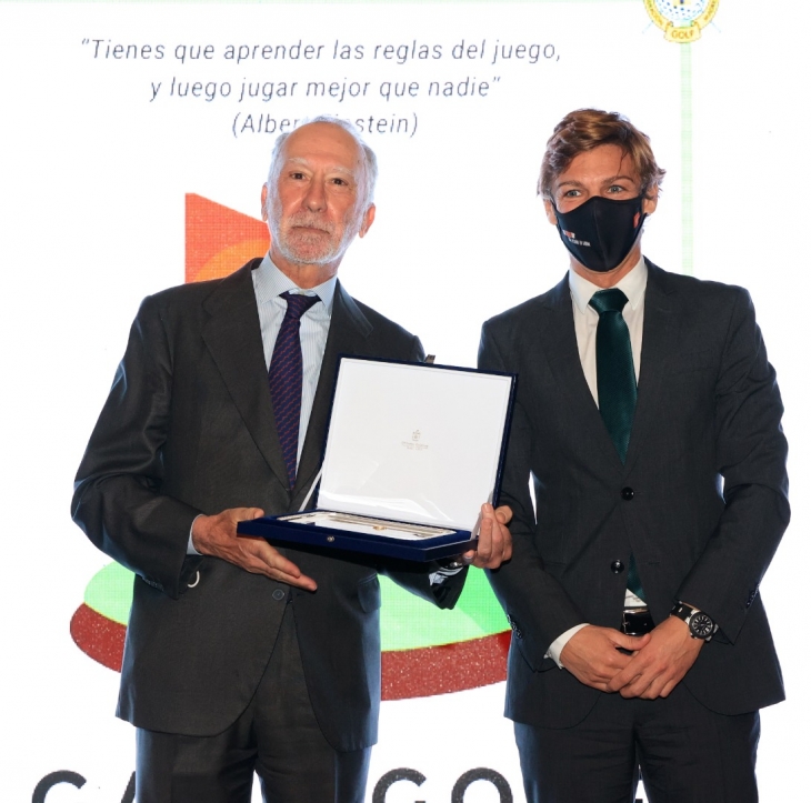 Y la dedicación y promoción del golf de Madrid a Antonio Huerta, expresidente de la Real Sociedad Hípica Española Club de Campo, con una Mención Especial que le hizo entrega, Alberto Tomé, viceconsejero de deportes de la Comunidad de Madrid.