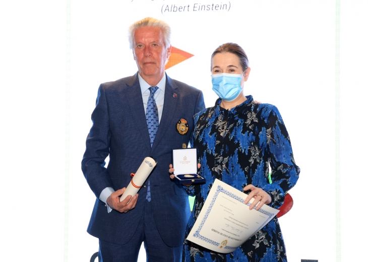 Posteriormente se hizo entrega de las Medallas al Mérito Institucional al Gobierno de la Comunidad de Madrid, en la figura de su presidenta, Isabel Díaz Ayuso, y que recogió en su nombre, Marta Rivera de la Cruz, consejera de Cultura Turismo y Deporte de la CAM, por su apoyo al golf federado durante los confinamientos permitiendo la práctica deportiva.