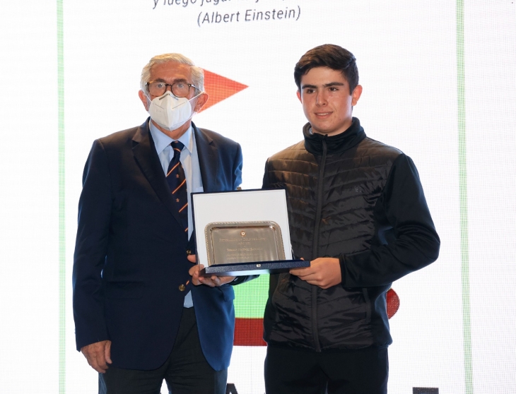 Gonzaga Escauriaza, presidente de la RFEG, entregando la placa de reconocimiento a Sergio Jiménez, Campeón de España Sub-16 y Sub-18 el pasado año.